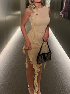 Be a charmer decked up in this elegant and timeless mesh tube dress! Crafted with see-through mesh. polyester and elastane. stand out in a dimensional wide flower at the elongated choker straps. featuring a flat bandeau neckline. a pullover styling rendered in a solid color. a figure-defining silhouette outlined with ruffle charms at the hem. ending up with a midi length. Find more unique women’s strapless dresses or trendy clothing in our boutique. and add a pair of butterfly heels for an instant glamorous feel.
