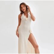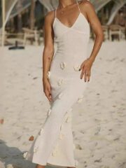 3D Floral V-neck Backless Lace-up Maxi Dress